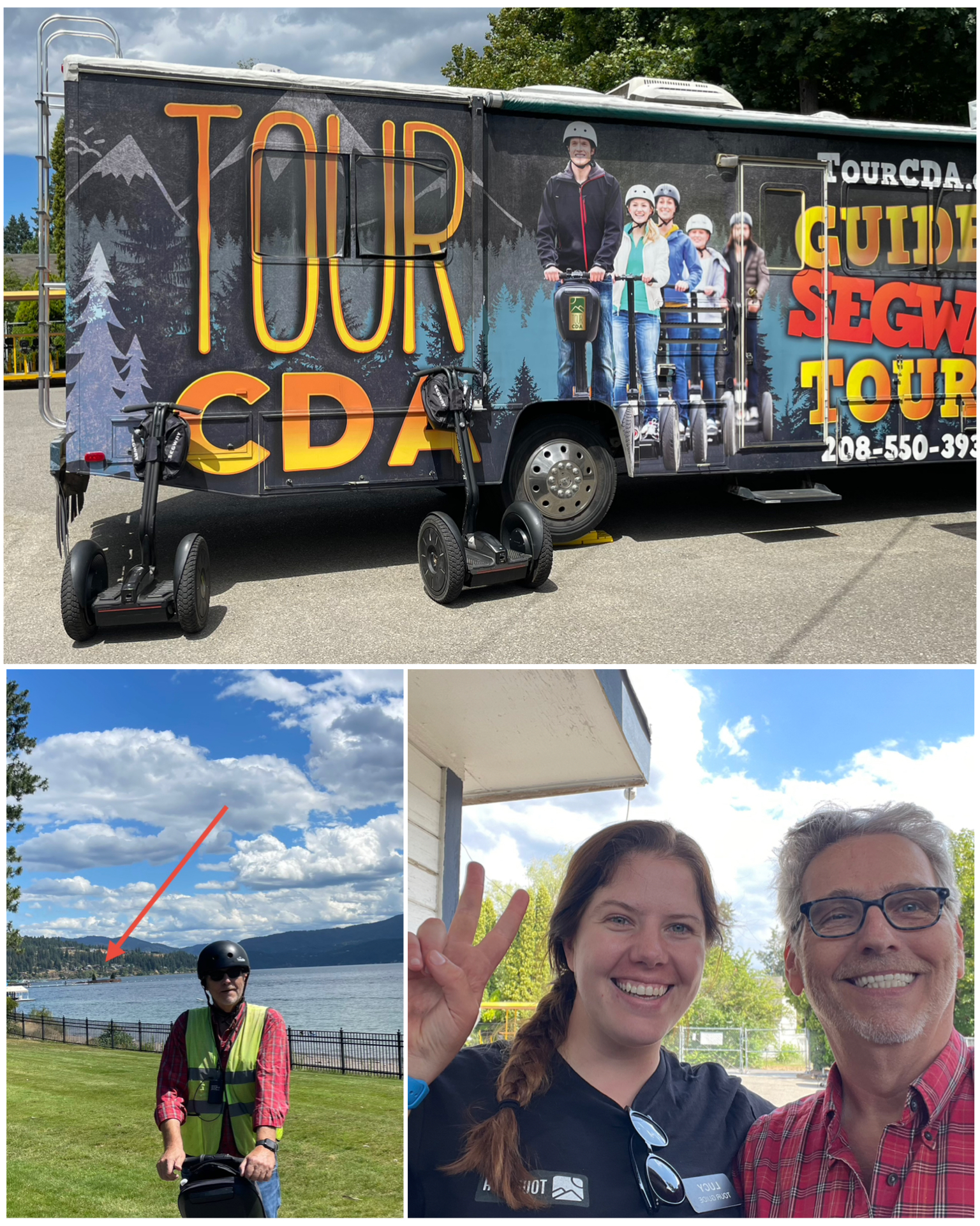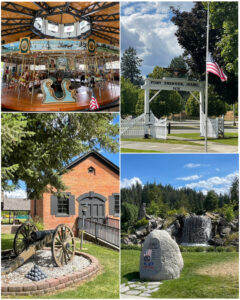 Our Segway tour took us through many parts of CDA, including the ritzy mega-bucks waterfront housing area – which did have some really nice homes. We also visited the beautiful downtown McEuen Park with trails and lots of fun stuff for the kids, and also the remnants of Fort Sherman, which operated from 1878-1900. Much of what is left from what was the fort is now North Idaho College. You’ll notice in the one picture (at right, top right) that the flag is flying at half mast. You might have heard the news story of two CDA firefighters that were lured to a brush fire up in a mountain, only to have been murdered by a crazy lone gunman. This had just happened on June 30th – just slightly over a week before I arrived. In fact, the day I was out on the Segway tour was the day they were having the funerals for the two firefighters. Such a sad and tragic event.