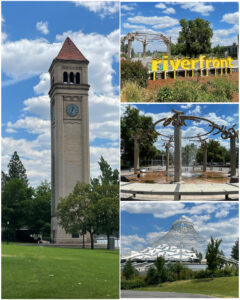Not only did Bill Fearn save the carrousel, he was also instramental in acquiring and developing hundreds of acres of land into community parks – including this one which would be known as Riverfront Park, and home to Expo ’74. Spokane was the smallest city to ever host a world’s fair. This park features a number of amazing structures and artifacts that truly make it a top tier park. First up was the Great Northern Clock Tower – that was built in 1902 and stood as part of a railway yard that once occupied the area. As the use of the railway yard diminished, the clock tower was slated to be demolished at some point in the late 1960s to early 1970s, but the 1972 efforts to save it were successful allowing it to be a focal point to the 1974 World Exposition. The Rotary Fountain (at left, center right) sits at the entrence to Riverfront Park from West Spokane Falls Blvd, and is a fun and functional fountain that had both small and big kids (aka adults) darting in and out of the cool squirting water on a warm summer day. It was dedicated in 2005 – many years after the expo. Lastly, this amazing structure known back then as the USA Pavilion, now known as the Spokane Pavilion (at left, bottom right) was built specifically for Expo ’74, and continues to serve the community with a beautiful amphitheater for concerts and other live venues with seating for up to 5,000 attendees. It originally had a covering forming a tent-like structure, with trees and other natural elements around. During the fair, it also featured the first ever IMAX movie titled “Man Belongs to the Earth”. The film featured fast fly-by scenes including over the Grand Canyon, whose realism was so great, it necessitated the use of barf-bags to those suffering from motion sickness (that would be me). The venue still has its IMAX screen and regularly features movie nights, while in the winter time, the venue serves as a skating arena. The town’s repurposing of what was once a depressed rail yard into a beautiful park for the world expo, and so well maintained today some 50+ years later as a beautiful community park, is most noteworthy. Well done Spokane!