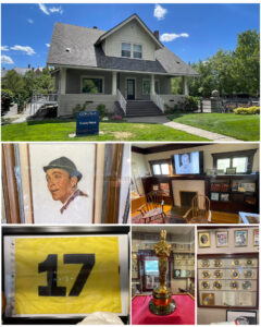 Next, I visited the childhood home of Bing Crosby. Born Harry Lillis Crosby Jr. on May 3, 1903 in Tacoma, WA, his family relocated here to Spoke three years later where he would spend the bulk of his growing up years. This house (at right, top) was built by his father in 1913, and sits within the campus grounds of Bing’s alma mater – Gonzaga University. Today, the house serves as a museum of Bing’s life, and features a number of artifacts from his career as a singer, comedian, entertainer, and actor. Some of the more notable artifacts include his one and only Academy Award – won for Best Actor playing the role of Father Chuck O’Malley in the film Going My Way. Also present was this flag that came from the 17th hole on a golf course in Spain, and was