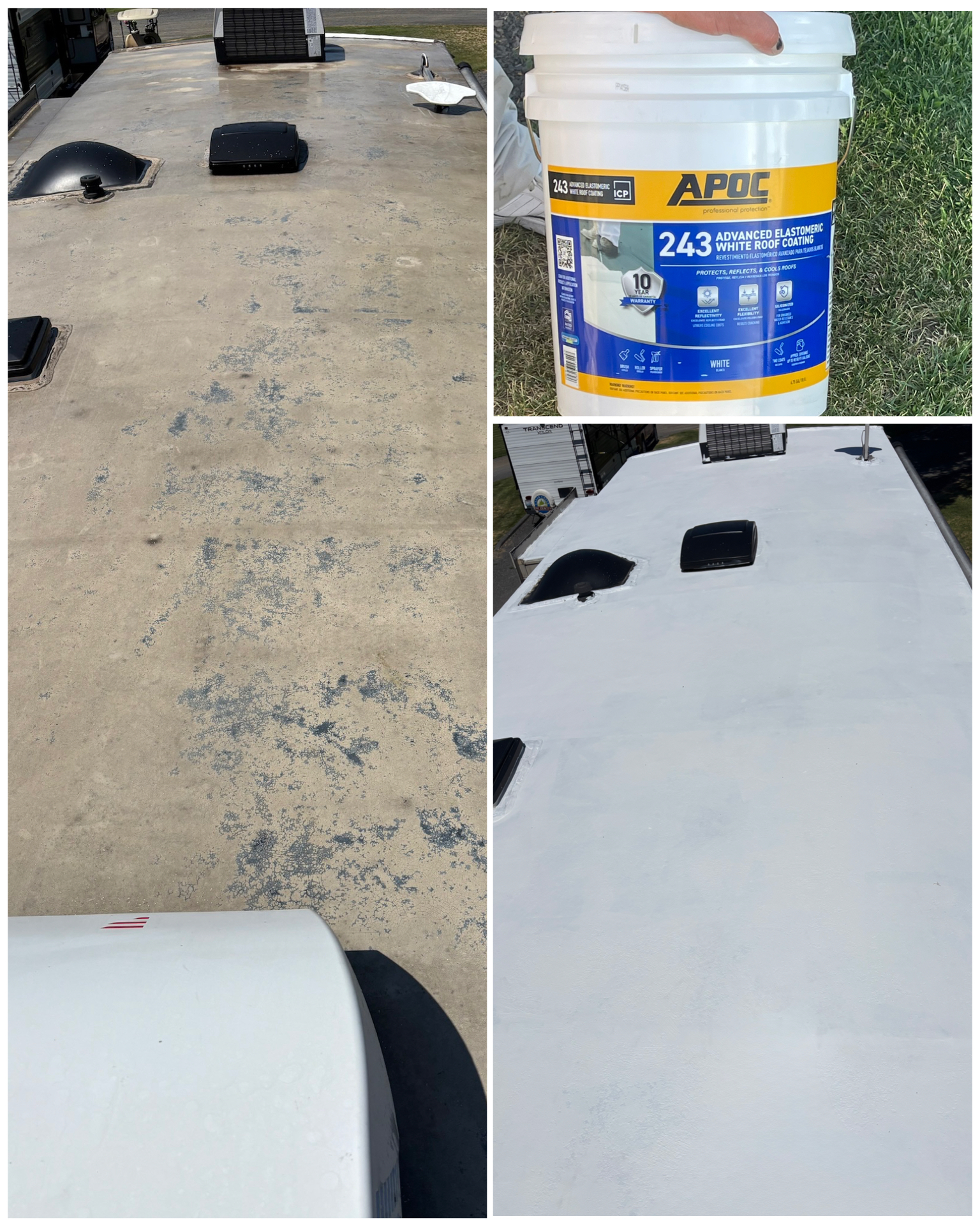 That Mobil RV cleaning guy did a fantastic job on cleaning your RV and your roof looks like new. Wow!!
