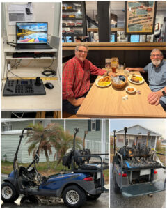 I continue to stay pretty busy with my tech committee duties, with my weekly CAP (Citizens Assisted Patrol) where I patrol the community using specially marked Polk County Sheriff golf carts, and other miscellaneous projects around the home base.  I did also have the pleasure of celebrating Gordon – my tech partner-in-crime’s birthday with a nice lunch out at Cracker Barrel, while another day he and I installed the new clubhouse laptop while also taking the opportunity to cleanup up the array of wires and connections therein.  Overall, it was a successful transformation!  In other exciting, yet sad news, another golf cart in the community was a total loss to a fire that engulfed and consumed most of its contents.  I was initially concerned that this might yet be another Lithium upgrade incident, as a couple years ago, another cart totally burned up that had recently been upgraded to Lithium.  As you may recall, I upgraded my cart to lithium back in early October.  Fortunately, this cart in this most recent fire had not been converted to lithium, so that was not the culprit.  Also, at the time of the fire, it was not located too close to their home so no injuries or additional property damage resulted.  All things considered, a good outcome.