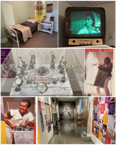 In addition to the interesting stories and artifacts found in the museum, this facility had one more special treat to share.  This hospital facility was used as the filming location for the 1975 Academy Award-winning movie “One Flew Over the Cuckoo’s Nest”  that stared Jack Nicholson as R.P. McMurphy and Louise Fletcher as Nurse Ratched.  The museum has an entire section dedicated to the movie, and contains many artifacts from the film.  Of particular note, the museum features the actual common room TV that was used in a scene where McMurphy wanted the TV to be turned on, but was denied by Nurse Ratched.  So instead, he pretended to be watching a baseball game while providing play-by-play calls as the game progressed, which encouraged all his fellow patients to join in.  It’s a classic scene from the movie, and can be seen HERE.  The museum even had that scene playing on a loop on the actual TV.  Very cool!  The museum also had the hydrotherapy machine that was also featured in a movie scene where the Chief tears it from the floor and uses it to smash through a window which he then climbs through to make his escape.  That scene can be viewed HERE.  An interesting trivia fact from the movie is that both real doctors and patients from the hospital were used as extras in the film, but their roles were reversed.  That is, doctors played the role of patients, while patients played the role of doctors. It was a big hit and apparently a lot of fun for them. They all also enjoyed a private pre-release viewing of the movie.  The only negative result of that was them seeing the escape scene which in the film featured them using an actual tree branch just outside of one of the windows to aid in the escape. Apparently, a few patients actually tried to mimic what they saw using the same tree branch as that used in the movie, resulting in the hospital having to finally cut down that tree limb.  Too funny!  It has been decades since I’ve seen this movie, and taking this trip down memory lane was certainly a lot of fun.  Now I want to see the movie again!