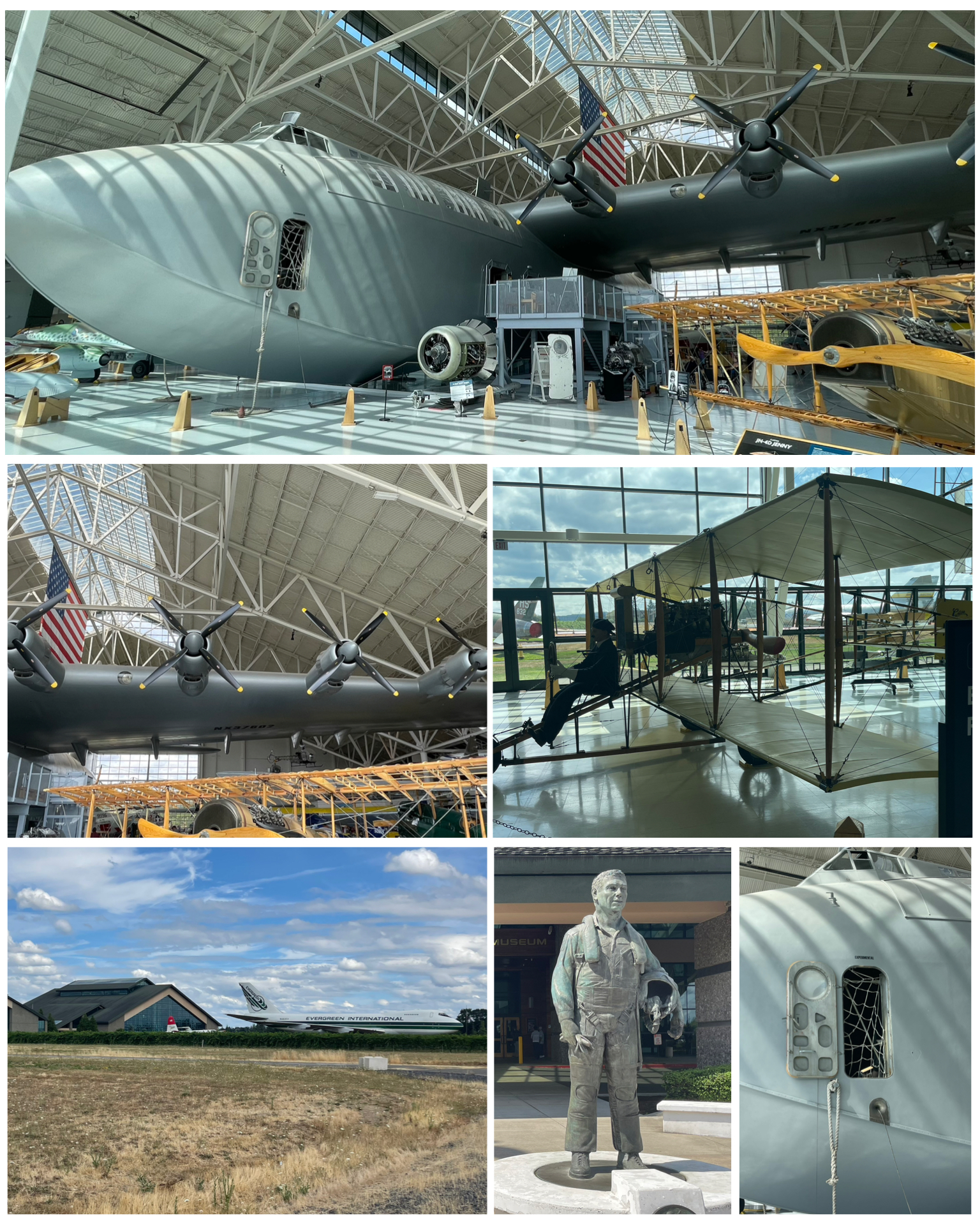 My final stop of this leg of the journey takes me to McMinnville, OR to the Evergreen Aviation & Space Museum.  I have visited lots and lots of aviation museums in my travels, and even a few that featured space exhibits.  This museum was much like all the others I’ve been to in that they exhibited lots of historical airplanes – some military, and some civilian.  But what made this museum truly unique was the extremely oversized hanger that showcased a very, very special and unique airplane.  This museum houses the Hughes H-4 Hercules aircraft – or perhaps as it might be better known as, the Spruce Goose.  This thing is absolutely massive, and extremely difficult to photograph due to its enormous size.  This was a prototype aircraft built by the Hughes Aircraft Company – led by none other than Howard Hughes.  For the longest time, it was the largest flying boat ever constructed, and it had the largest wingspan of any aircraft ever flown (that is until 2019 when another larger aircraft flew).  It was to be a transatlantic transport plane to be used in World War II.  However, it’s first and only maiden flight did not take place until Nov 1947, after the war had already ended, so the project was scrapped.  The Hughes Aircraft company maintained the aircraft in a climate controlled hanger until Hughes’ death in 1976.  After that, a piece of the wing made its way to the Smithsonian Museum, while the rest of the aircraft hopped around through several private organizations for display and use in California, including a stint with the Walt Disney company.  Then, when Disney decided to scrap its planned use of the aircraft, it was given to the Evergreen Museum in 1994 where it has been hanging out ever since.  It was a fun trip, and really cool to see this one and only historic airplane.