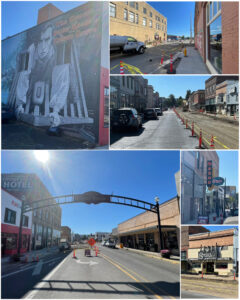 Last up on my Animal House tour, I traveled 20 miles to the south to visit the town of Cottage Grove – home to the famous final scene in the movie where they hold a parade.  The Main Street historic district was actually going through some sort of major construction project, but I did manage to walk around a bit to get a few pictures.  I didn’t see any signs or other markings that commemorated this street from the Animal House movie, but there was a giant mural of Buster Keaton (at right, top left) that indicated the 1926 movie The General was also filmed here in Cottage Grove.  So I don’t know if the town will add some references to the Animal House movie after all the roadwork is done.  Some of the neon signs that were seen in the movie are still present in town (at right, lower right), while the side street where the parade is intentionally misdirected by the Delta boys is also present (at right, top right).  Overall, this was a really fun trip exploring all these Animal House filming locations, and brought back some great memories of the movie.  Now I’m gonna have to watch it again for old times sake.